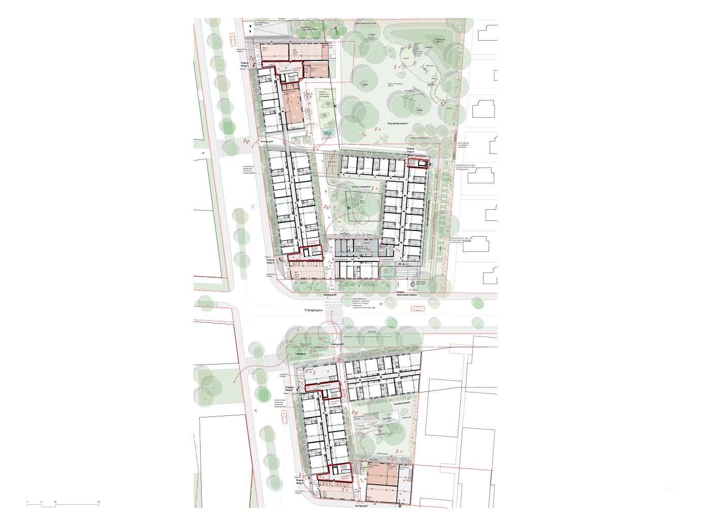 Site C in the north, with its extensive open spaces close to the park and a wide range of communal facilities on the ground floor, has a focus on “families & sport”. In addition, the garconnier complex will also be embedded in the ensemble. Site D in the south, with its special type offer (“I-you-we-living”) and a spacious wellness area on the roof, has a focus on urban-oriented residents.